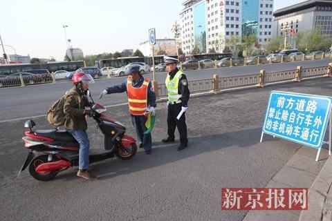 新京报快讯(记者郭超)电动自行车禁止在10条道路行驶首日,交警主要以劝为主。