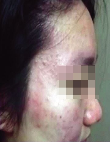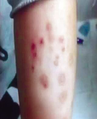 常州外国语学校,部分在校学生手部、脸部等出现大面积红疹。 视频截图
