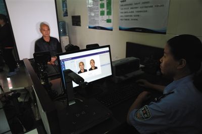 10月1日,江苏户籍的吕先生正在西城区厂桥派出所照相,用于申请居住证。 图/视觉中国