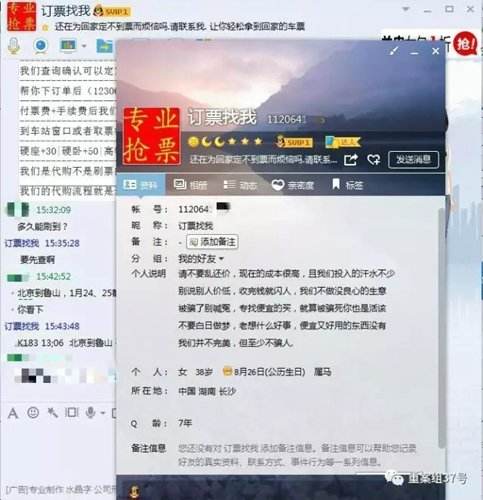重案组37号(微信ID:zhonganzu37)调查发现,这些QQ群大都被设定为“全员禁言”模式,群主或管理员不时会发布“有抢票需要的找我单聊”这样的信息。更多时候,群主会发布当日或次日可以购买何日车票这样的“干货”,而每当有一定数量的新成员入群后,群主便会重申抢票流程。
