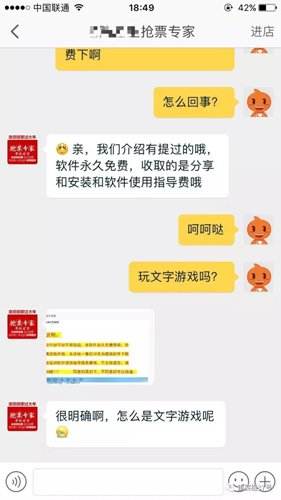 姜昊决定自食其力。他在一淘宝网店花60元购买了一款抢票软件,安装后不间断刷了3天也没能抢到票。让他气愤的是,这款软件在网上可以免费下载。姜昊找店家理论,对方却承认软件免费,称收取的是“分享、安装和软件使用指导费”。