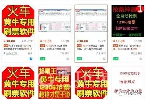 ▲网上形形色色的“黄牛专用刷票软件”。 网络图片