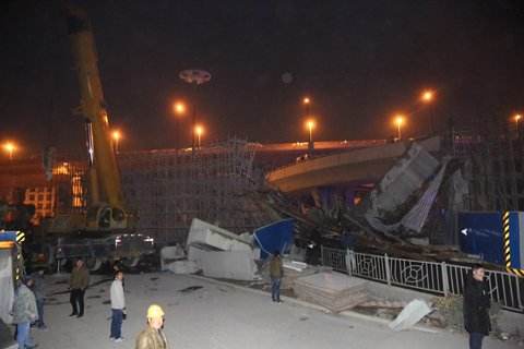初步了解,按照设计要求,农业路沙口路交叉口原有部分匝道需要拆除,施工方在拆除段搭设了支架,当时正在做旧桥匝道拆锯作业,部分拆除的旧桥箱梁放支架上时发生意外。