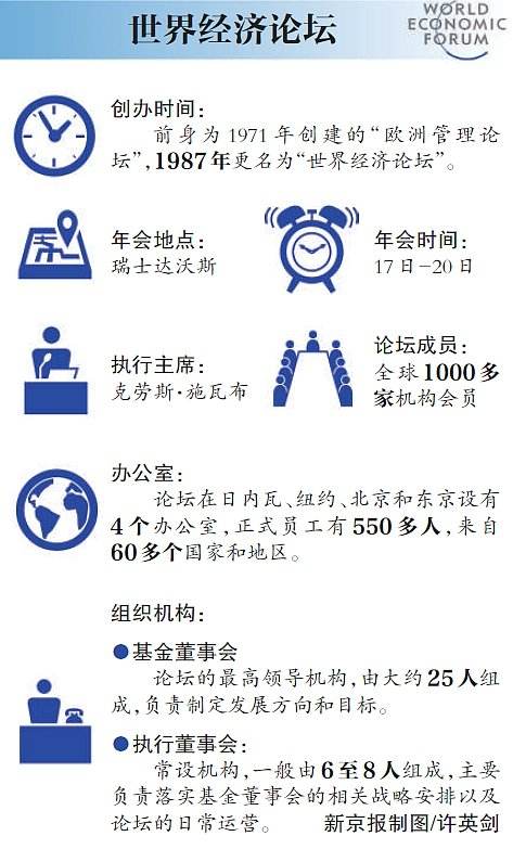 今年论坛年会的主题是“领导力:应势而为,勇于担当”,将围绕振兴世界经济、推动资本改革、阻止社会进一步分化等几大主题举行一系列讨论。