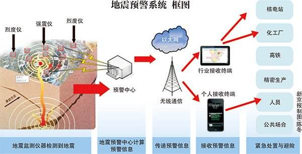 我们和当地政府部门合作,在可能发生地震的、人员密集的地方布置传感器,实现地震监测。当地震等级大于安全预设、也就是发生破坏性地震时,就能抢在地震波传到各地之前,通过电波提前几秒、几十秒,通过微博、电视、电梯、地铁等渠道推送预警信息。