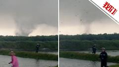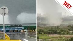该图显示,淡蓝高空中一个巨大的亮白漏斗云,极似龙卷风的形状。网友惊呼“今天大风,北京南边郊区,惊现‘化形’龙卷风,或者巨大的冰激凌?”