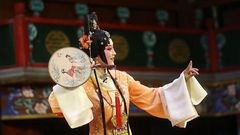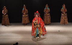 上场前,演员在后台练习。