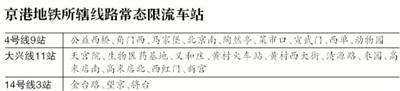 限流时间多为早晚高峰,5号线、6号线、大兴线限流车站均超10站;两郊区线路提高运力
