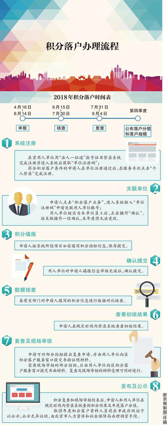 4月16日,北京将正式启动首批积分落户申报工作。昨日,《北京市积分落户操作管理细则》正式发布,明确“持北京市居住证、不超过法定退休年龄、在京连续缴纳社保7年及以上且无刑事犯罪记录的”均可申报积分落户。今年第四季度,北京将公布落户分值,并公示拟落户人员信息。