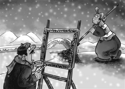 元旦假期刚过,一场“瑞雪”降临杭州,不少游客特地趁着雪天来欣赏“断桥残雪”这难得一见的“西湖十景”之一。然而记者赶到时发现,整条白堤一眼望去全是黑色的柏油路面,断桥主桥面上的积雪已被扫光。岳庙景区的工作人员说,游客的心情她完全理解,但断桥积雪不扫不行,不然游客安全无法保障。(综合报道) 漫画/姚昊