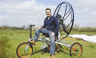 里德发明的飞行自行车可在1200米高空持续飞行3小时。