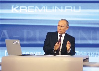 昨日,俄罗斯总统普京参加“直接连线”电视直播。 图/IC