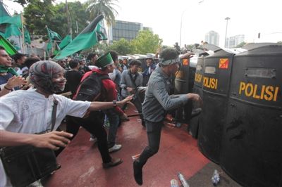 当地时间4日,印尼首都雅加达街头出现了针对华裔省长钟万学(印尼名巴苏基·贾哈亚·普尔纳马)的数万人抗议示威,并一直持续到当天夜里。随后,由于部分示威者拒绝离开总统府前,防暴警察与示威者爆发了暴力冲突。