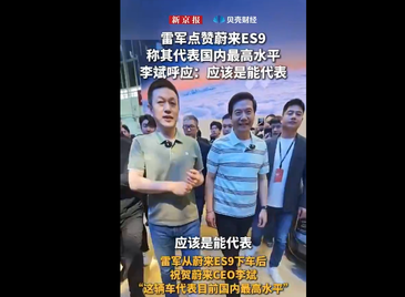 小米雷军点赞蔚来ES9,李斌呼应