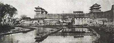 1921年,西直门南面全貌及绕过瓮城向南流的内城西护城河被奥斯伍尔德·喜仁龙摄下。“文革”期间,这座被孔庆普排在拆除序列最末的完整城楼也被误拆。