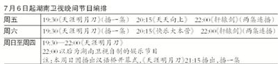 由钟汉良、陈楚河主演的古装剧《天涯明月刀》,此前是周日至周四每天19:30在湖南卫视播出,连播三集。王牌节目《天天向上》《快乐大本营》于每周五、周六19:30播出。被寄予厚望的《轩辕剑》原拟定于每周五、周六接档《天天向上》和《快乐大本营》21:30播出,同样打算连播三集。谁料几天前突然传出“该剧因过于神话玄幻误导青少年而被广电总局叫停”的消息。对此湖南卫视三缄其口,《轩辕剑》出品方唐人影视公司也取消了前天的发布会,但前日晚上,刚刚停播一天的《轩辕剑》宣传片悄悄地再现荧屏,并取消了此前醒目的倒计时宣传语,改以“即将播出”的字眼。昨日22:00,《轩辕剑》播出。