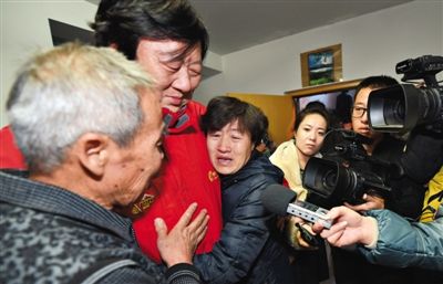 昨日,呼格吉勒图的父母李三仁、尚爱云听到再审结果后与新华社记者汤计含泪相拥。汤计曾为“呼格案”写了5篇情况反映。新华社记者 任军川 摄