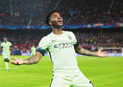 斯特林是一款冲锋枪,也是一个球员的名字。所以,这个名叫斯特林的球员注定是进攻天才。曼城与塞维利亚比赛的第8分钟,后腰费尔南迪尼奥禁区线上送出直传,斯特林快速前插面对门将左脚推射远角得分。