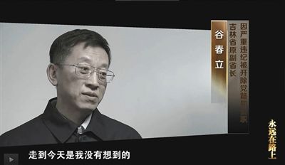 本集中第一位出现的落马省部级以上高官是吉林省原副省长谷春立。在反思自己的罪责时,谷春立认为自己失败的人生最大(问题)就是和企业家之间没有做到“清”,“比如说我犯罪问题主要是跟一些企业家之间有一些联系。”在他看来,这是其人生最大的教训。