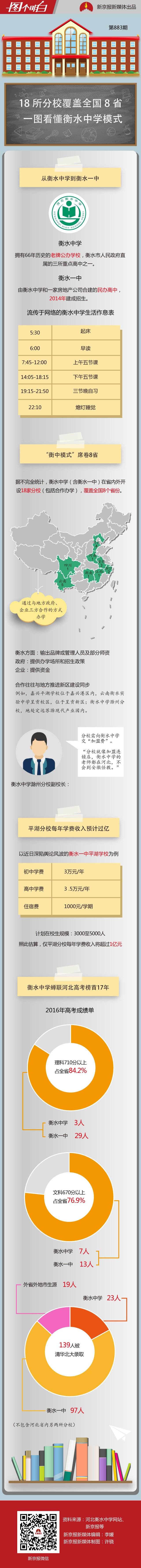 近日,衡水一中平湖学校 “违规提前招生”,引发来自教育界内外的一系列争议。在此背后,是衡水中学持续3年的市场化运作,以及不断攻城掠地式的扩张。据不完全统计,通过地方引进、企业出资的形式,这几年衡水中学(含衡水一中)已在全国8个省份建成18所分校。