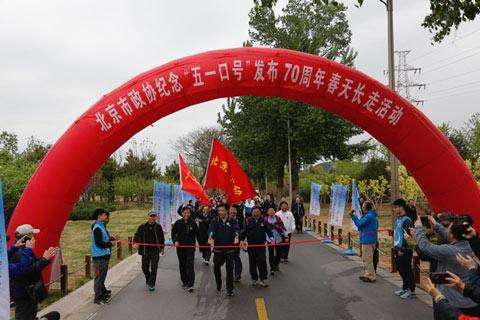 新京报快讯(记者何强)为纪念中共中央发布“五一口号”70周年,今日上午,北京市政协组织市、区政协委员、机关干部等300余人在怀柔区雁栖湖举行春天长走活动,全程约11公里。