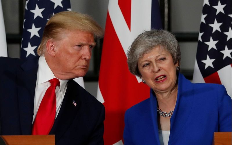 当地时间6月4日,英国伦敦,英国首相特雷莎•梅与美国总统特朗普与举行联合记者招待会。图/视觉中国