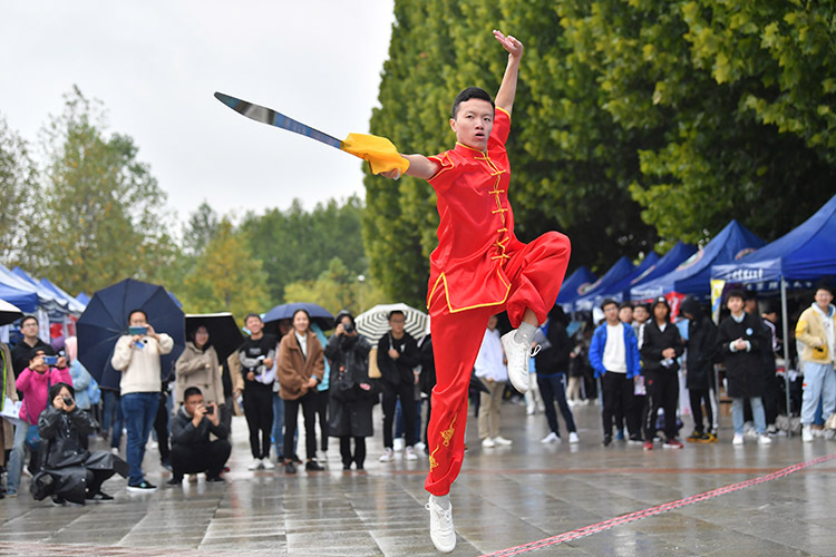 武术社团社员的表演获得了同学们的阵阵掌声。