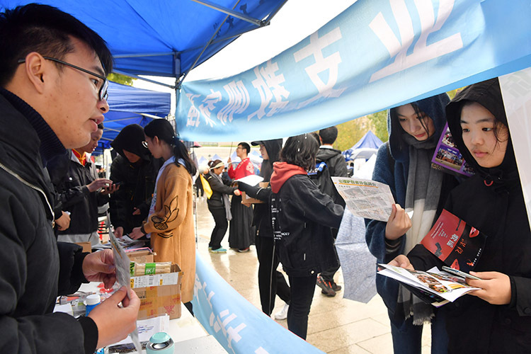 新京报讯 10月13日,北京理工大学“社团巡礼招新”活动在良乡校区举行。这是北京理工大学最盛大的社团活动,百余个校园社团摆开招新阵地,数千名同学参与巡礼活动,被戏称为“百团大战”。