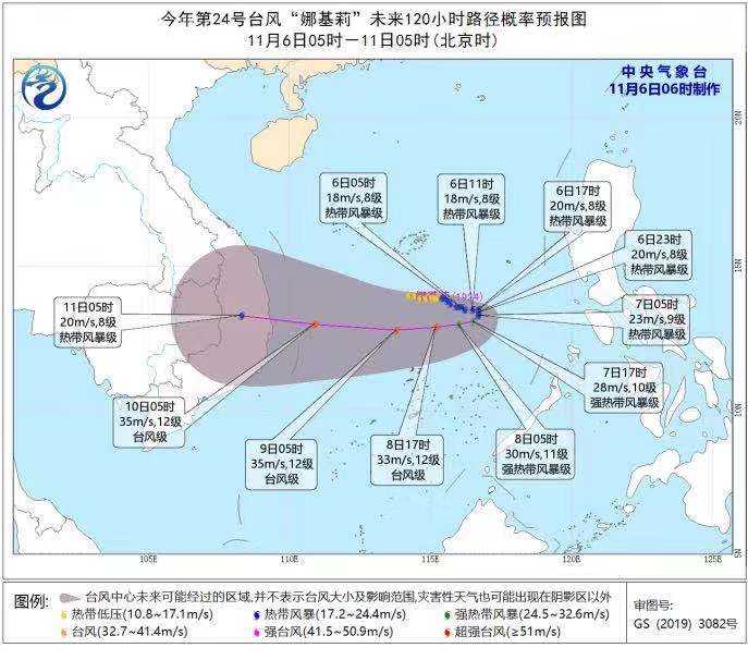 新京报快讯(记者 邓琦)昨晚,今年第24号台风“娜基莉”(热带风暴级)在南海生成。受其影响,我国南海大部海域、华南沿海地区将有6级至8级大风。中央气象台11月6日6时发布台风蓝色预警。