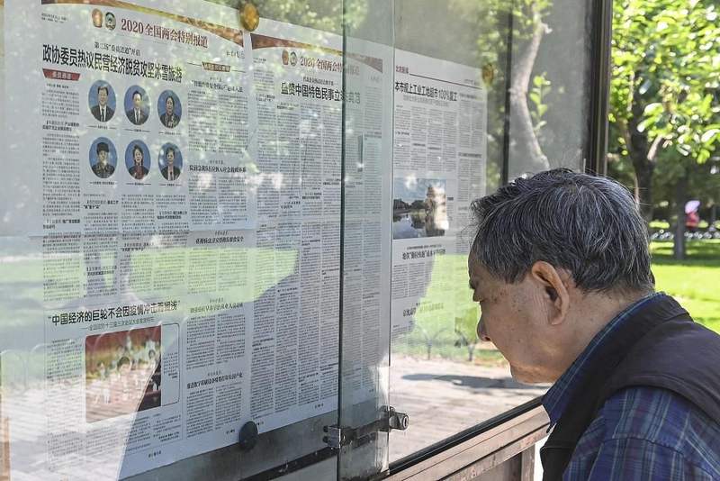 5月26日,市民在北京天坛公园的阅报栏前阅读刊载有民法典草案相关新闻的报纸。 图/视觉中国 中新社广东分社 陈骥旻