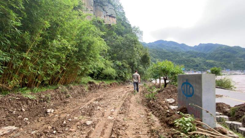 国道212线中断,有人通过新开辟的道路。新京报记者 马骏 摄