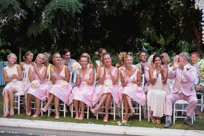 詹姆斯·福斯特:我们希望每个环境都反映出一个评级的等级;婚礼是最高级别,需要显得超级完美。招待会将在一个私人开发商造的豪华家庭住宅的草坪上举行。一切都必须是白色、粉色和绿色的。