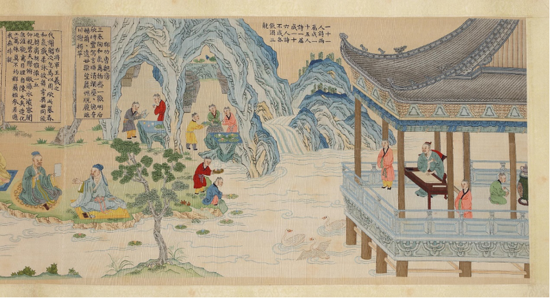 乾隆时期《钦定补刻端石兰亭图帖缂丝全卷》收录的《仿李公麟流觞图》(局部)。