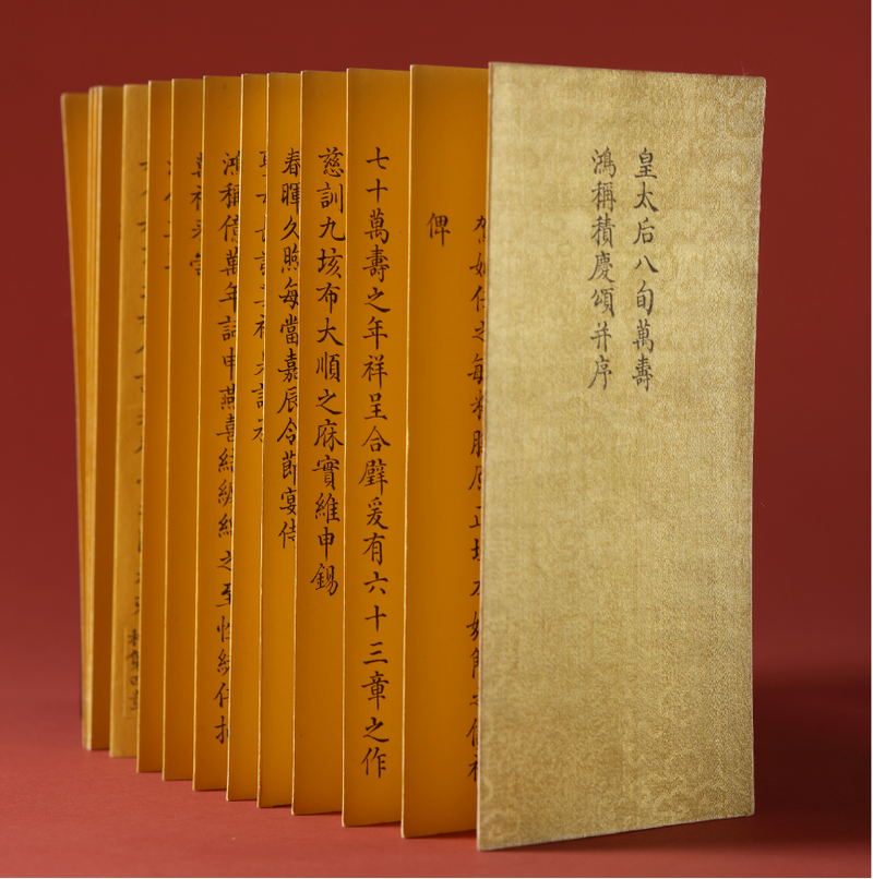 崇庆皇太后八旬万寿祝寿颂词册页,即《皇太后八旬万寿鸿称积庆颂并序》。