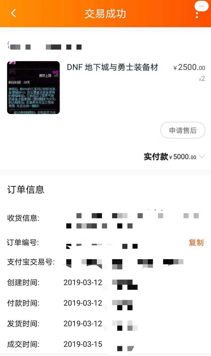 2019年,江欣登陆周辉淘宝账号查看到的游戏装备购买记录。受访者供图