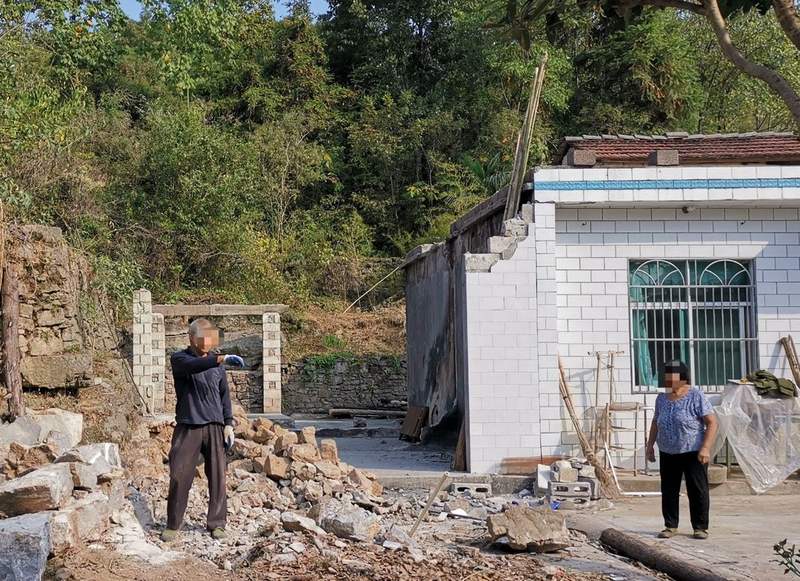 2019年,江欣老家被小辉烧毁后,拆倒的房屋。受访者供图