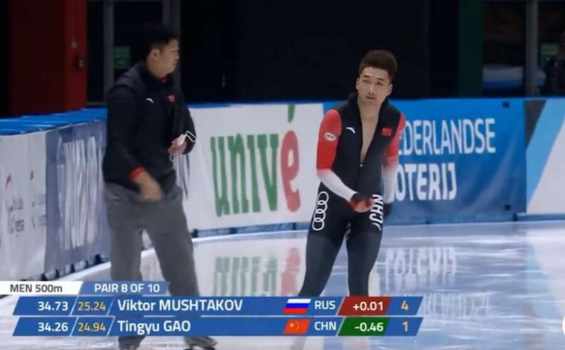 首日的男子500米比赛,高亭宇前100米保持了一贯的强势,滑出9秒32的成绩。最终,高亭宇以34秒26夺冠,这一成绩刷新了场地纪录。日本选手新滨立也、加拿大选手杜布瑞尔分列二三名。作为速度滑冰最短的一个小项,男子500米竞争非常激烈,前10名成绩均在34秒左右。