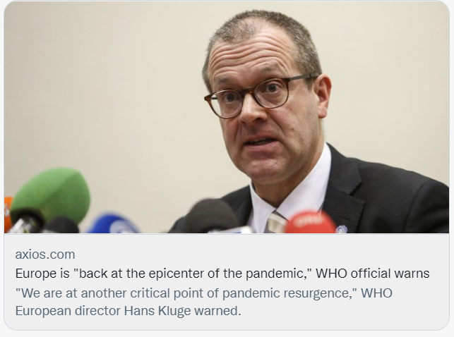 世界卫生组织表示,欧洲再次成为全球新冠疫情的“震中”。/社交媒体截图