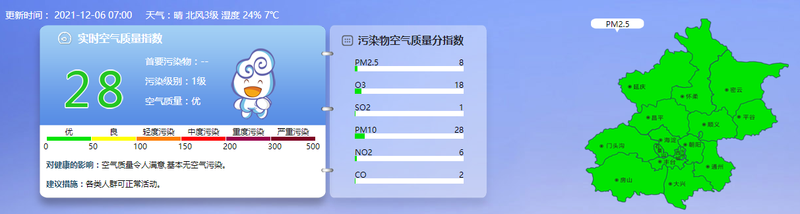 据北京市生态环境监测中心今早7时数据,目前实时空气质量指数为28,空气质量为优。