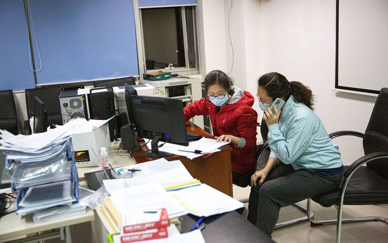 开展病例流调的工作人员正与疫情关联场所负责人沟通,希望他们提供信息。新京报记者 郑新洽 摄