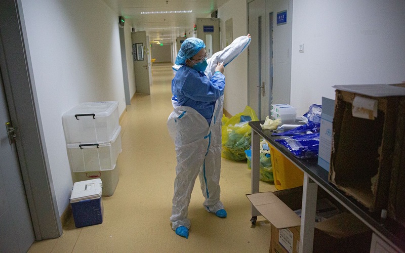 几人无奈开玩笑:穿上隔离衣,真是彻底与外界隔离了。