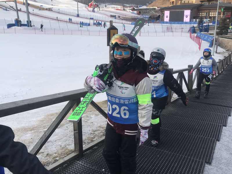 那时候,看到推雪道的队友从上面滑下来,终点的志愿者们都特别兴奋。“因为可以上去和队友击个掌,这是我们为数不多的可以活动一下的时间。”