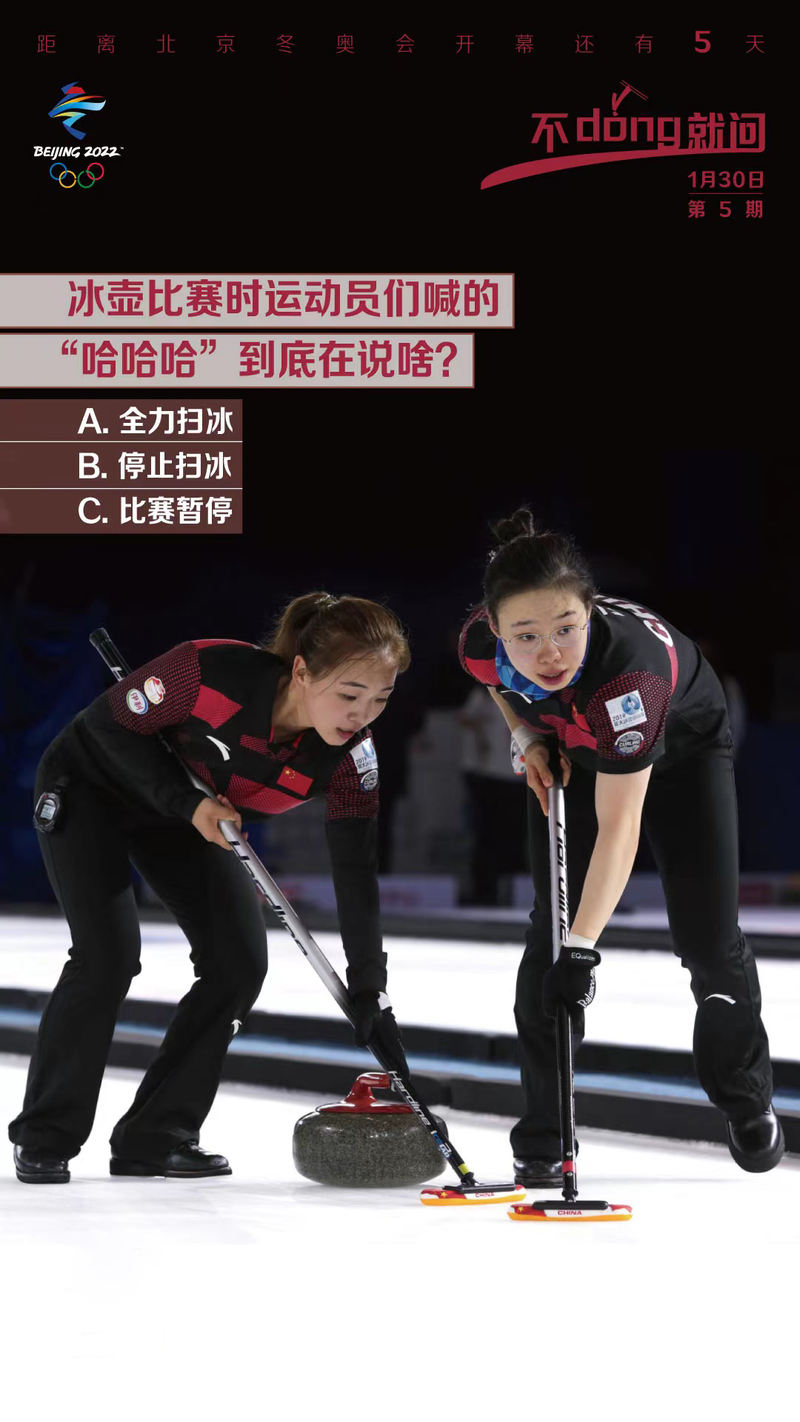 冰壶比赛时,运动员们之间互喊的“哈哈哈”“哒哒哒哒哒”“呀呀呀”,其实代表着不同的含义。