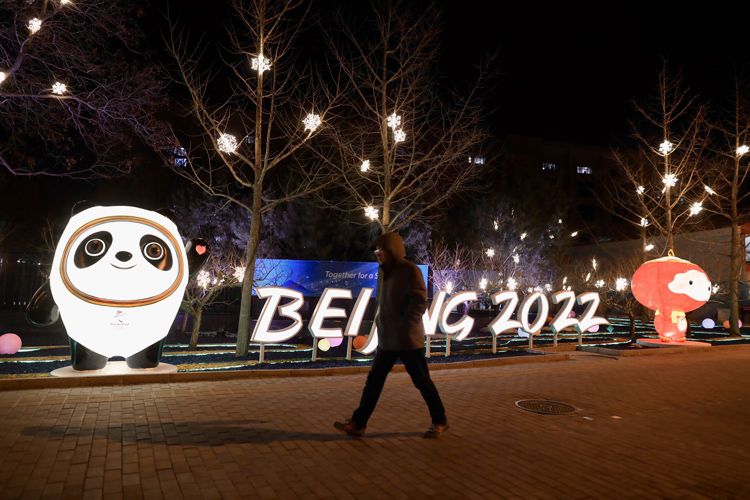 1月28日晚,北京海淀区西直门外大街,腾达大厦楼体立面亮起巨大的冬奥吉祥物“冰墩墩”“雪容融”。日前,海淀区已完成冬奥会、冬残奥会及春节景观布置工作。