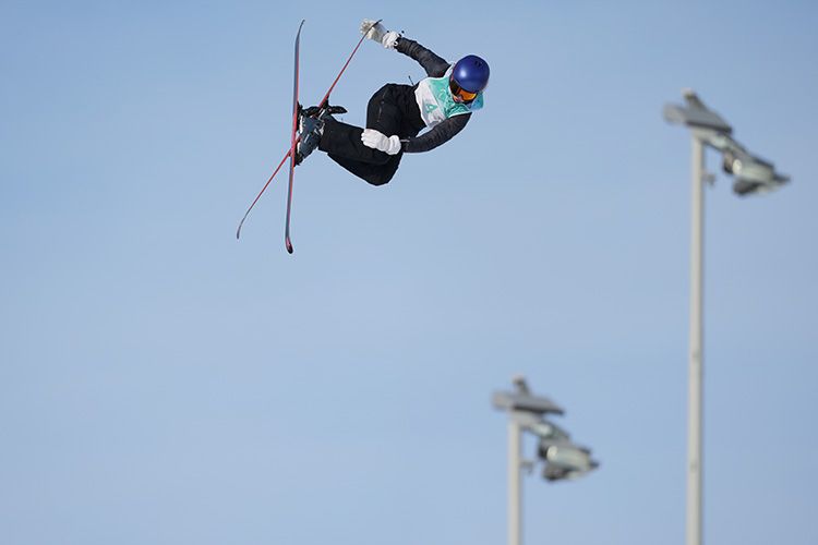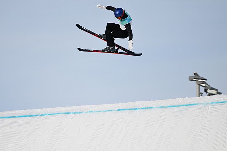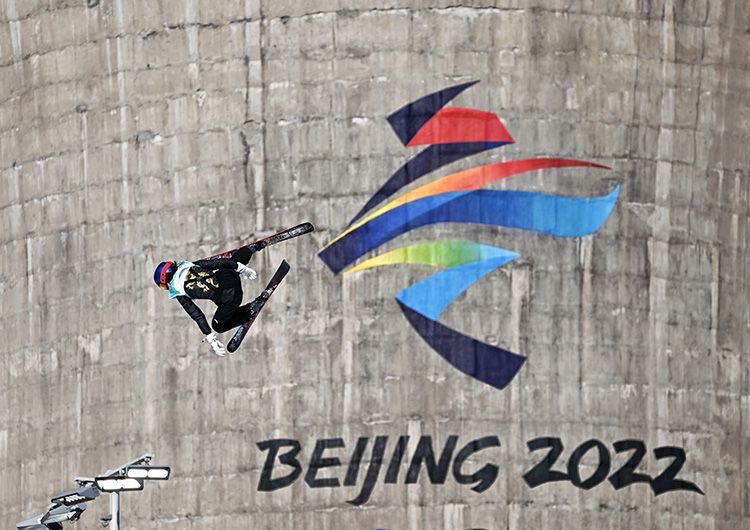 2月7日,自由式滑雪女子大跳台资格赛在首钢大跳台举行,谷爱凌终于迎来北京冬奥会“首秀”。谷爱凌在第一跳中顺利完成技术动作,平稳落地,获得89分。图为:谷爱凌完成动作,平稳落地。