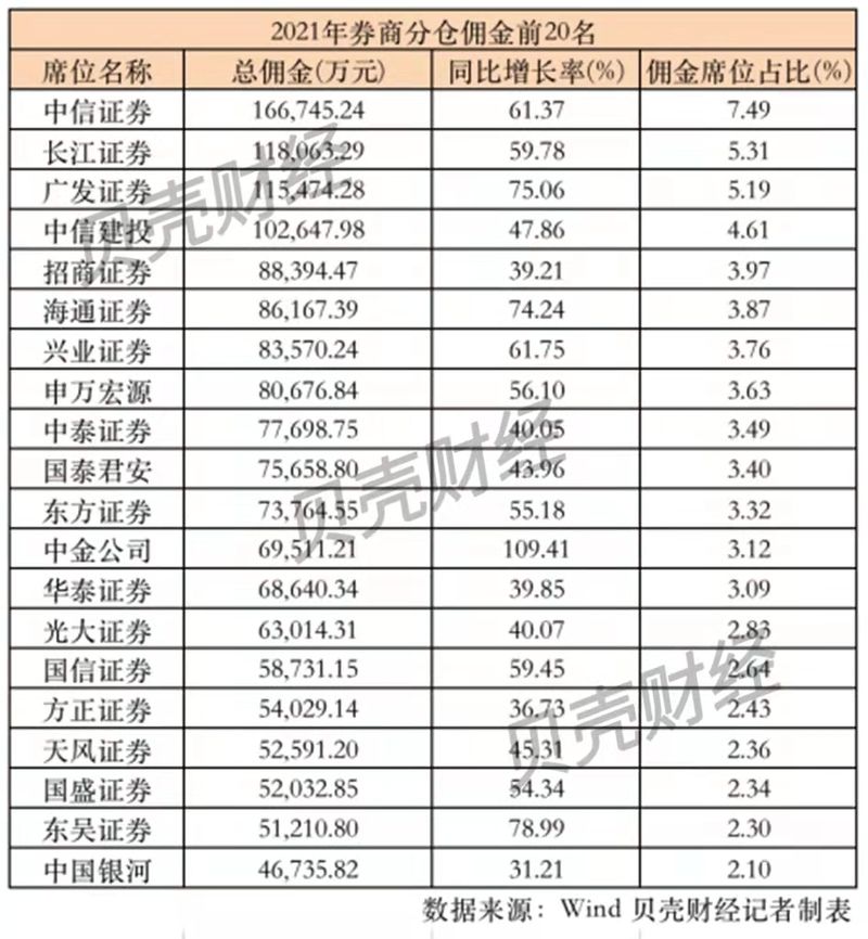 具体来看,4家券商的基金分仓佣金超过10亿元,佣金席位占比22%。中信证券以16.67亿元的基金分仓佣金收入位列第一,同比增长61.37%;长江证券(11.81亿元)、广发证券(11.55亿元)和中信建投(10.26亿元)紧随其后,三家券商平均增速超60%。