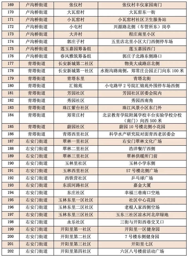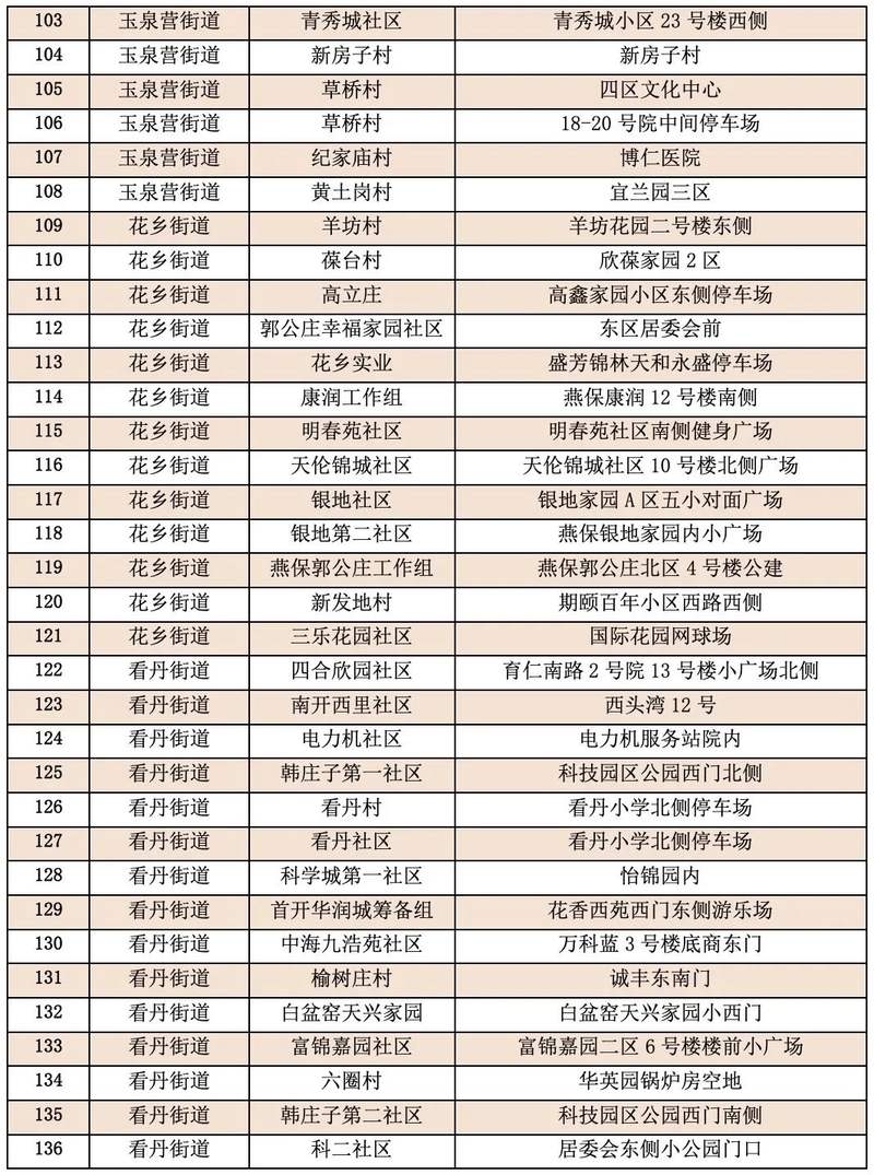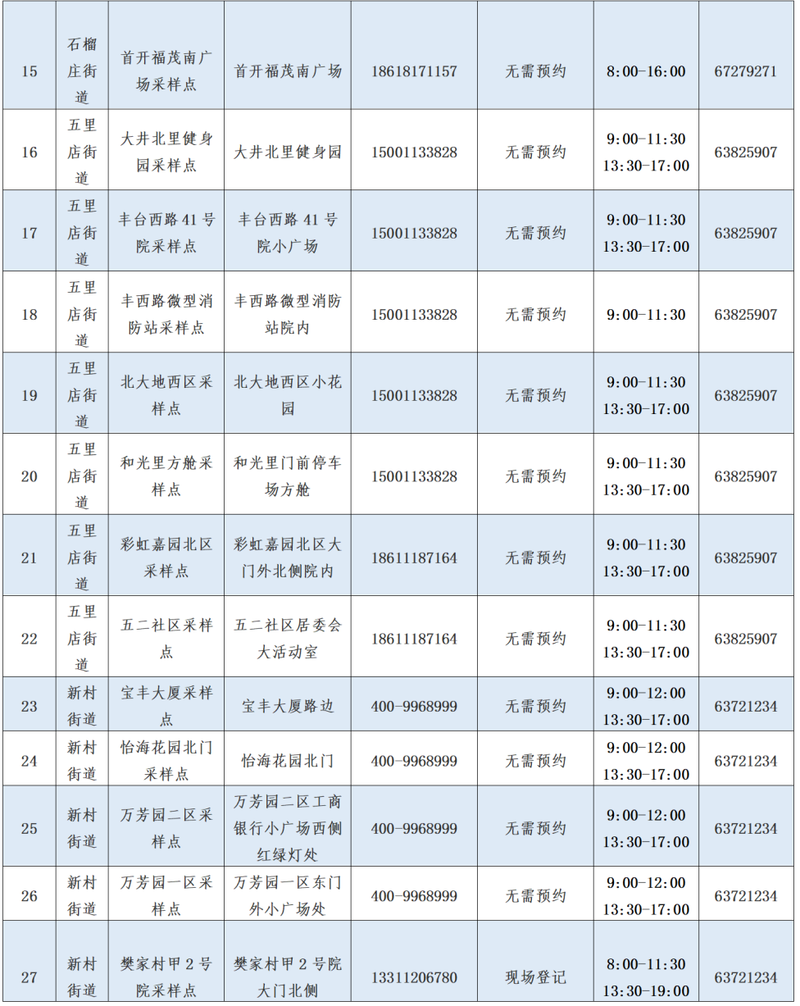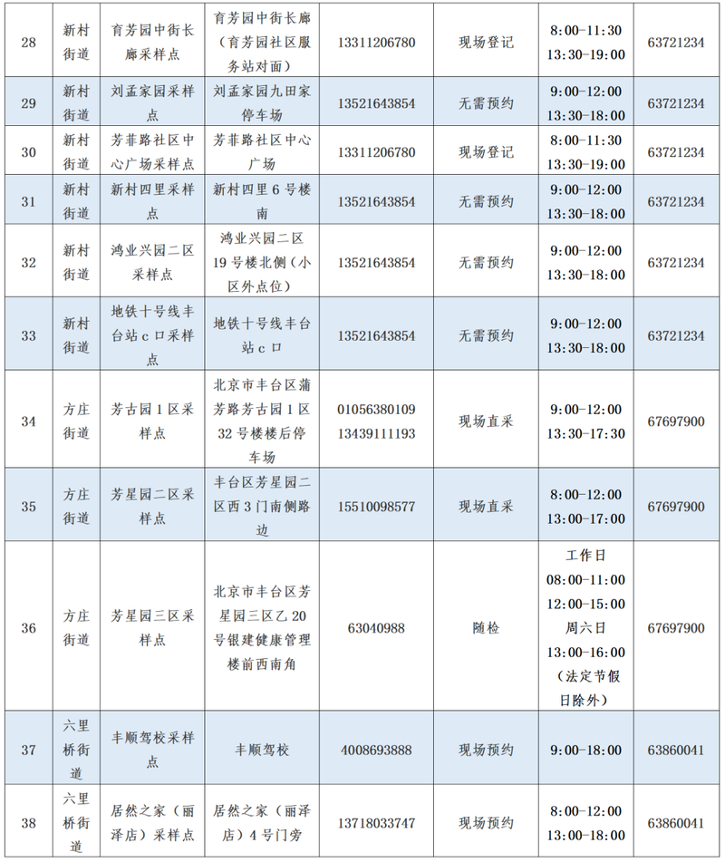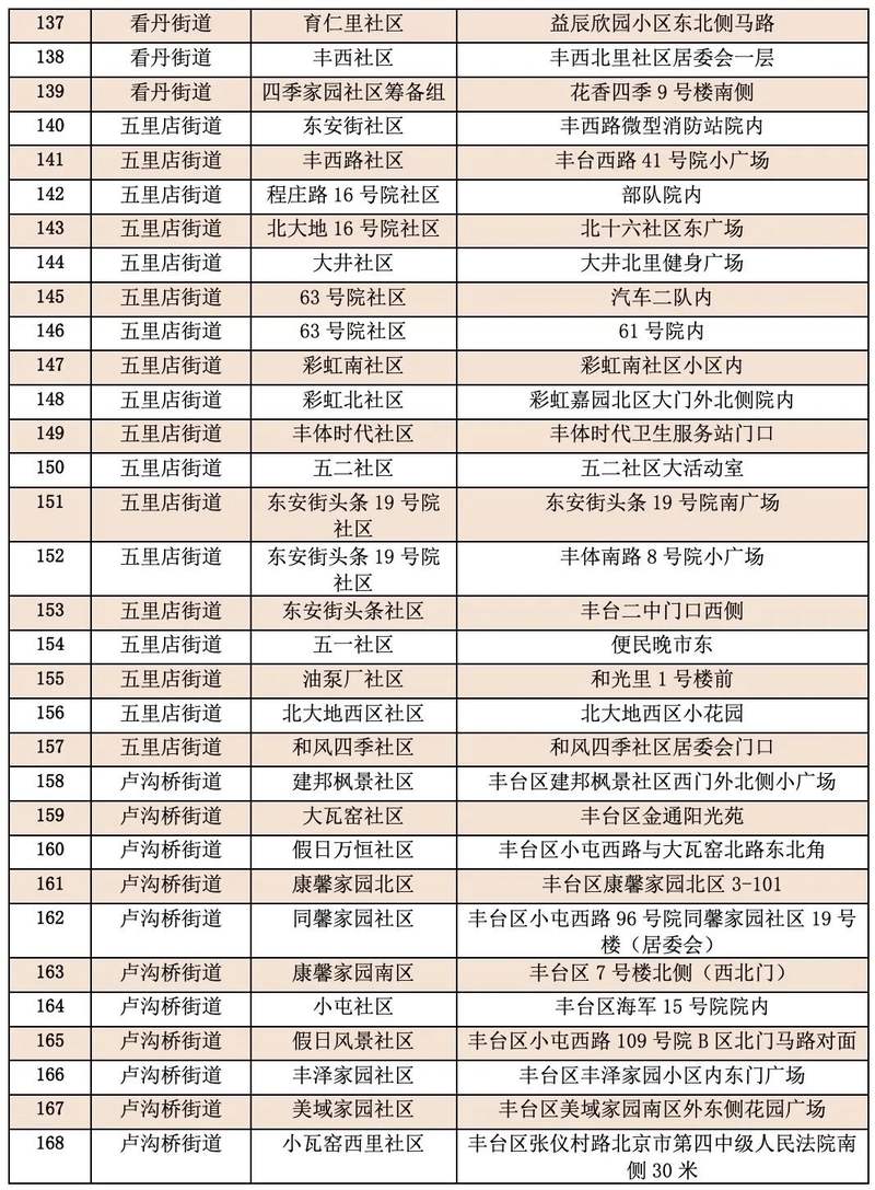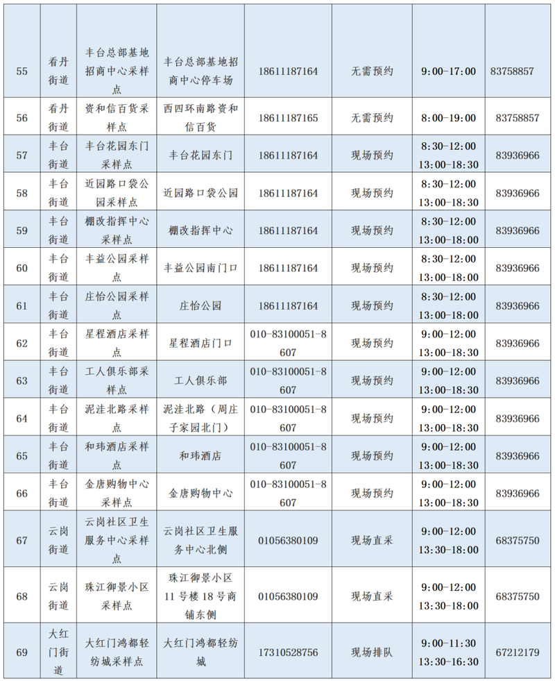针对近期聚集性疫情面临的社区传播风险,6月15日至17日,丰台区在常态化核酸采样点位的基础上同步设立以下434个临时采样点位。广大居民朋友可根据自身需求,按照所在社区、村通知就近选择点位参加核酸检测。
