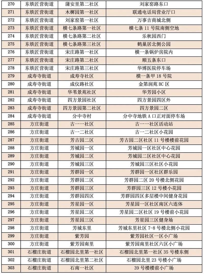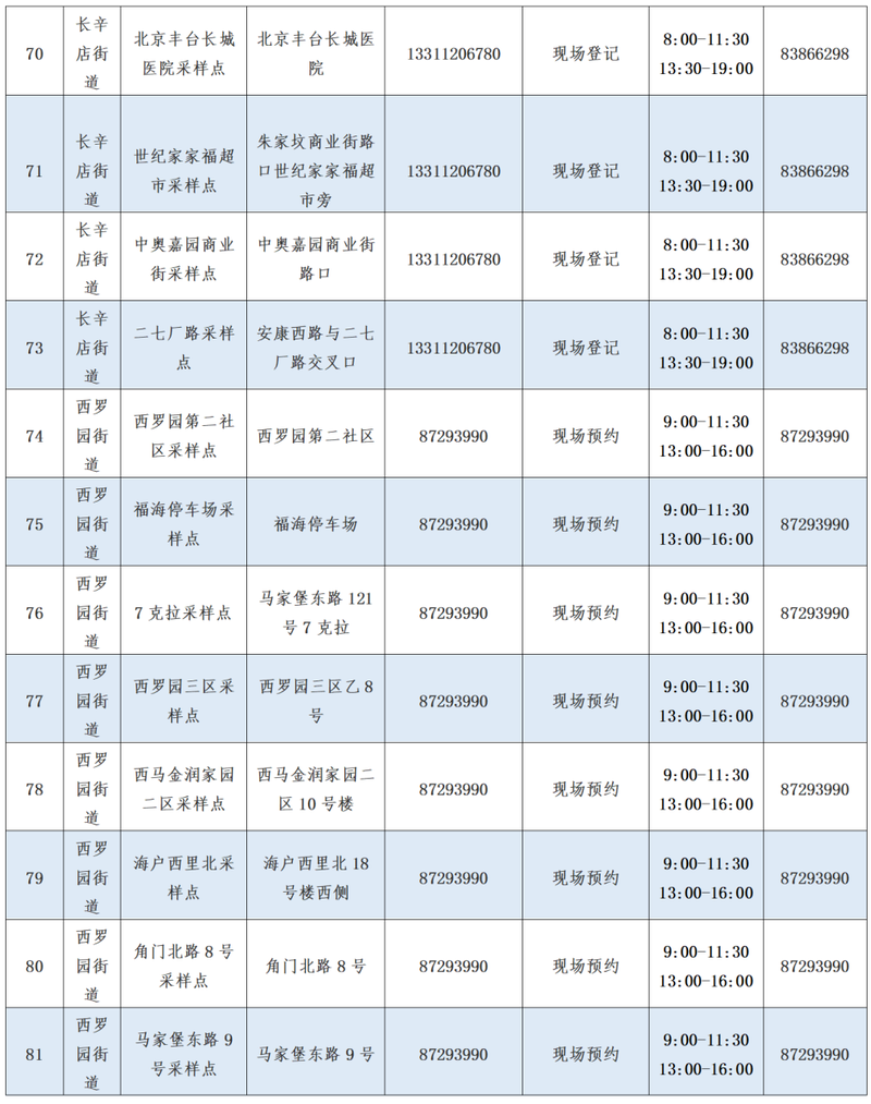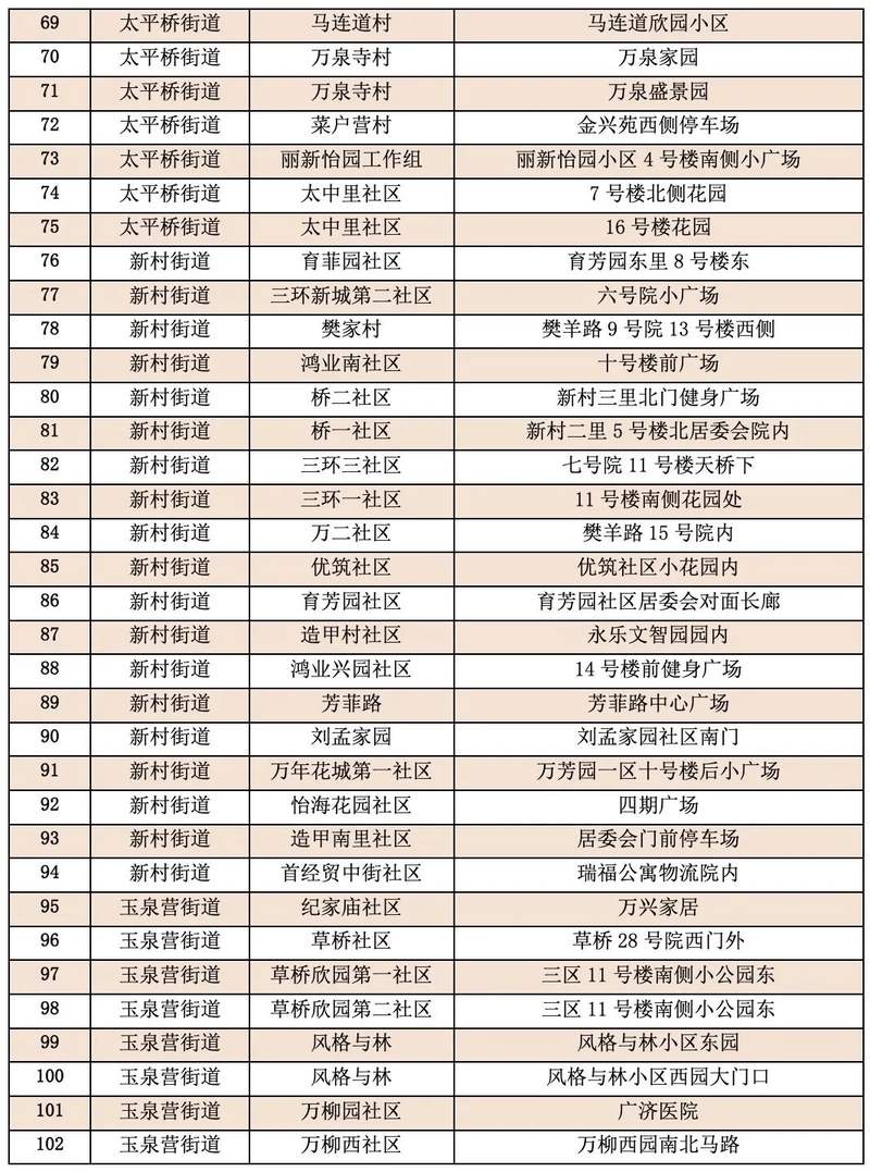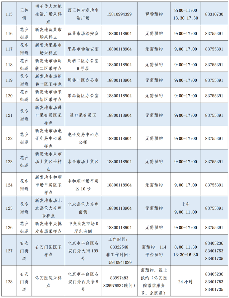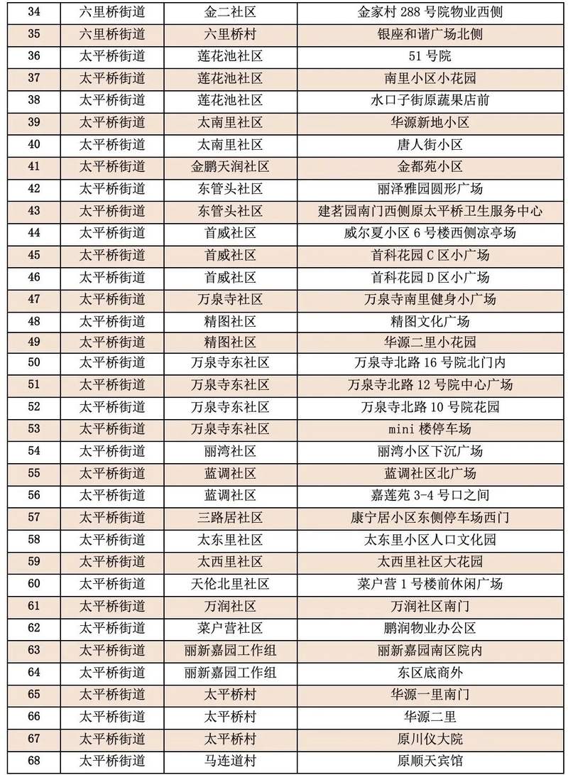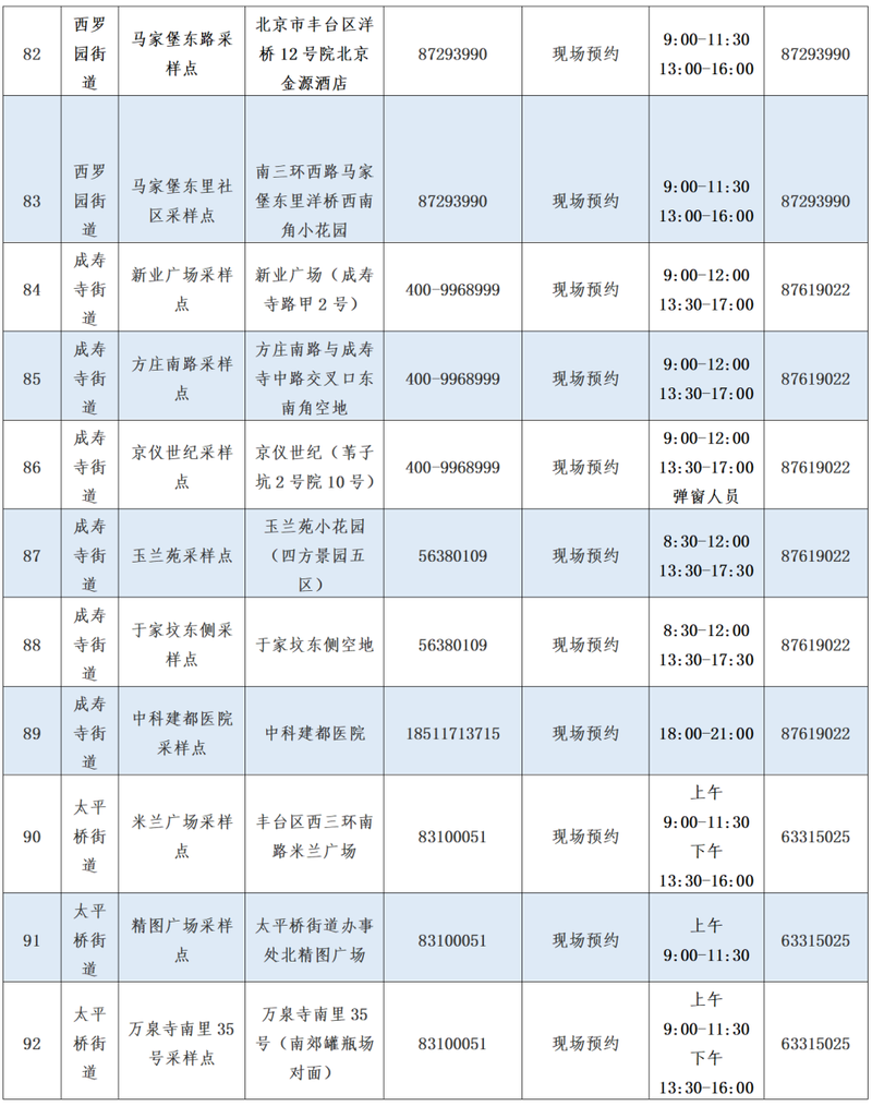 针对近期聚集性疫情面临的社区传播风险,6月15日至17日,丰台区在常态化核酸采样点位的基础上同步设立以下434个临时采样点位。广大居民朋友可根据自身需求,按照所在社区、村通知就近选择点位参加核酸检测。