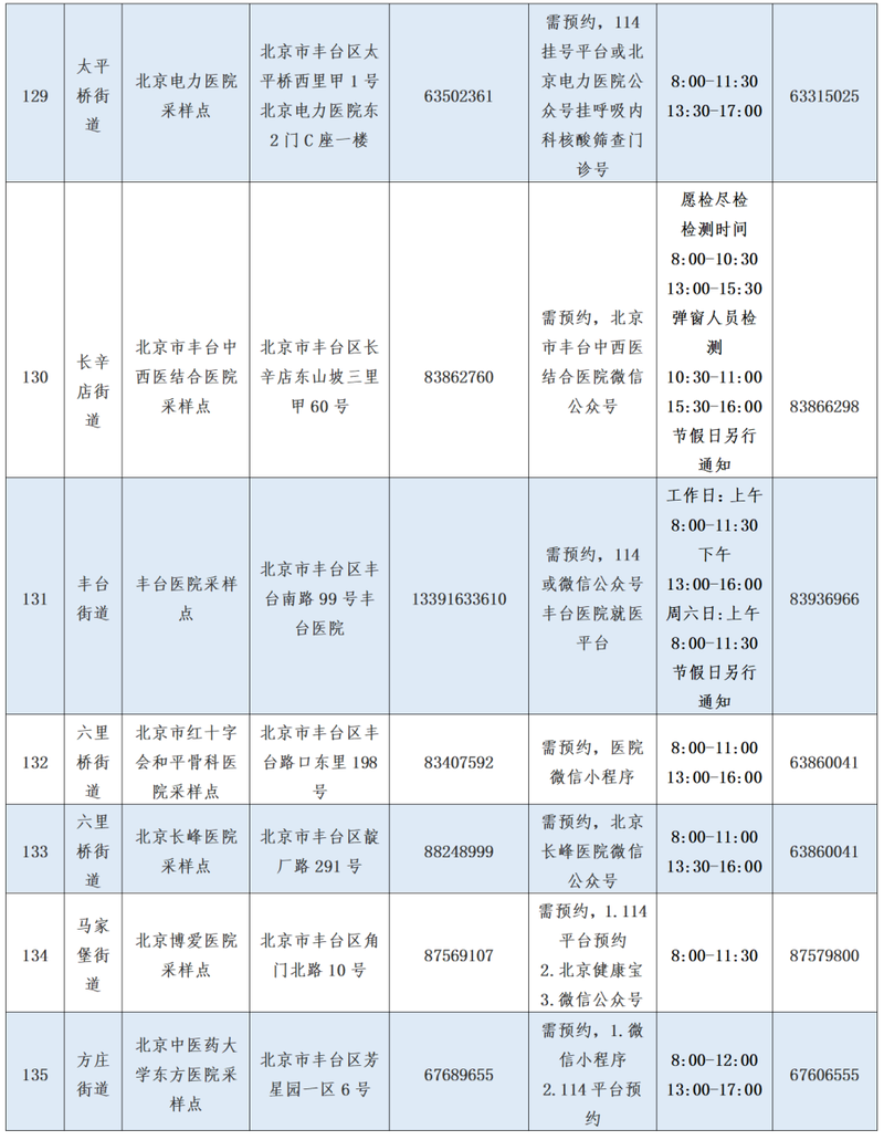 丰台区持续推进常态化核酸检测工作,将陆续发布新的常态化核酸采样点位,敬请关注。