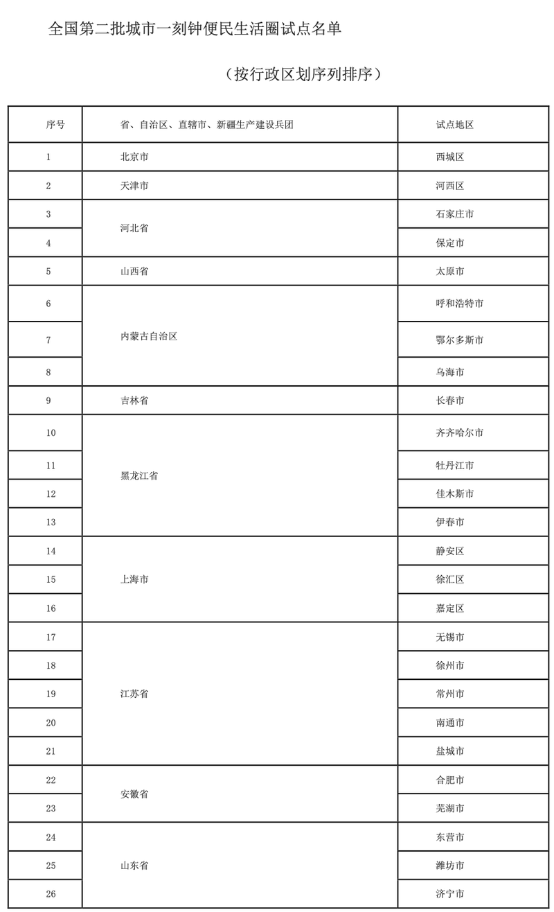 附件:全国第二批城市一刻钟便民生活圈试点名单